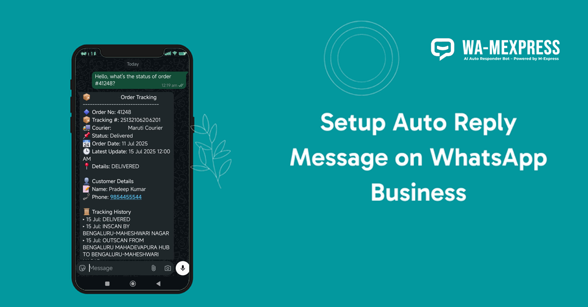 Smart WhatsApp AI bot that auto-replies with real-time order tracking. In today’s fast-paced digital world, customers expect instant responses from businesses. Delays in replies can lead to frustration, lost trust, and decreased satisfaction. Many businesses struggle with slow response times due to limited availability, high inquiry volumes, and inefficient manual handling. The solution? AI-powered WhatsApp chat automation with WA-MExpress.